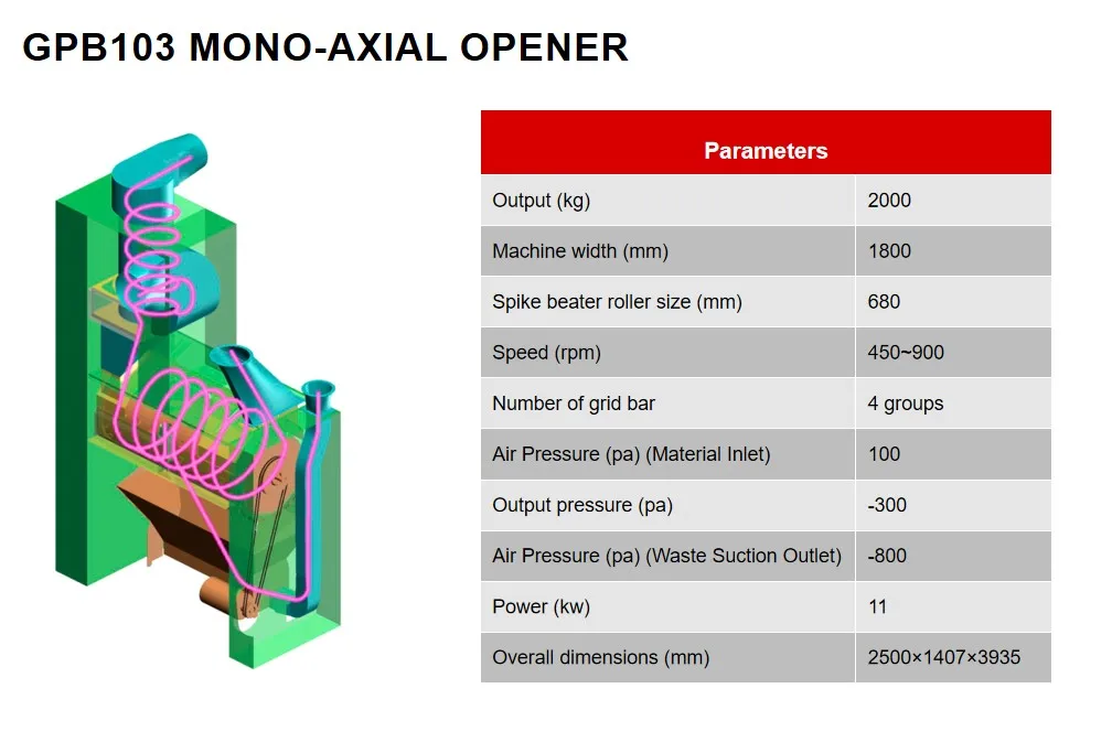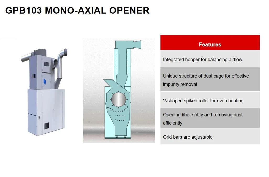 GPB103 Model Mono-Aixal Opener for Blow Room-carding Production Line for Cotton Synthetic Fiber for Textile Spinning Machinery