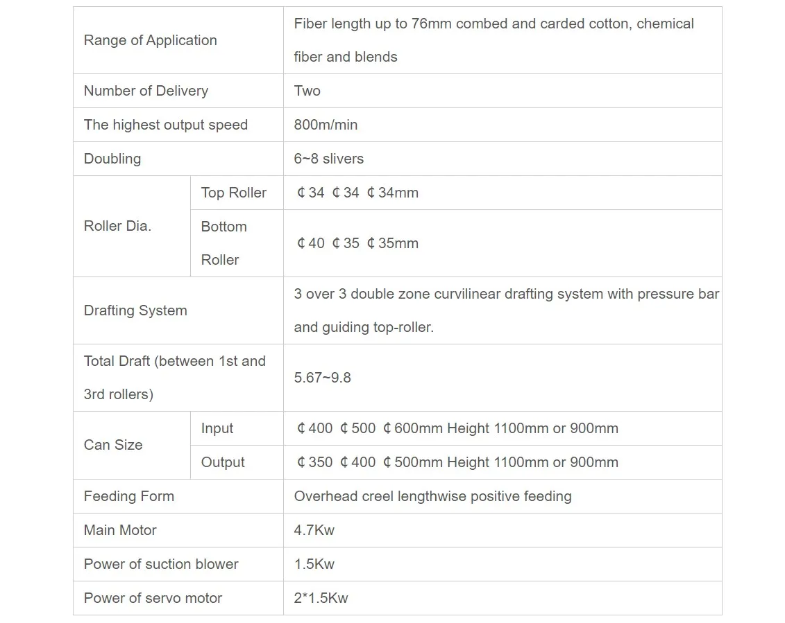 7.Available for automatic filter cleaning, automatic can changing and sliver breaking for full can.
